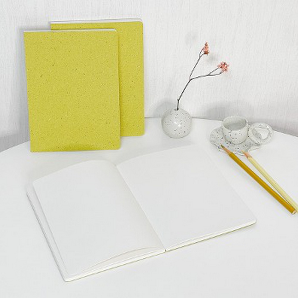 Das Chlorophyll Note heisst so, weil das Covermaterial bis zu 50 % aus Fasern wie Weizenstroh, Gras, Baumwolle und Cannabis hergestellt wird, und zudem kompostierbar ist.