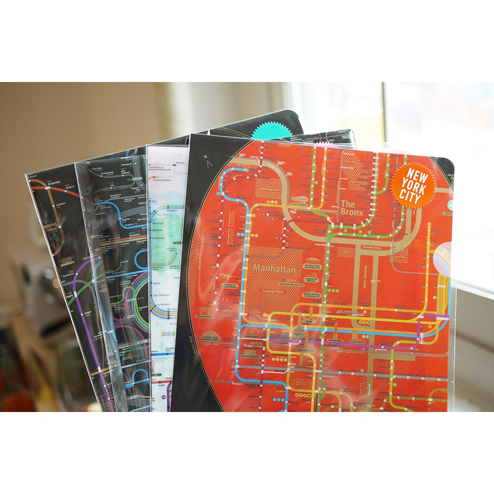 Dokumentenhüllen aus PVC mit den Bahnplänen von Zeroperzero.