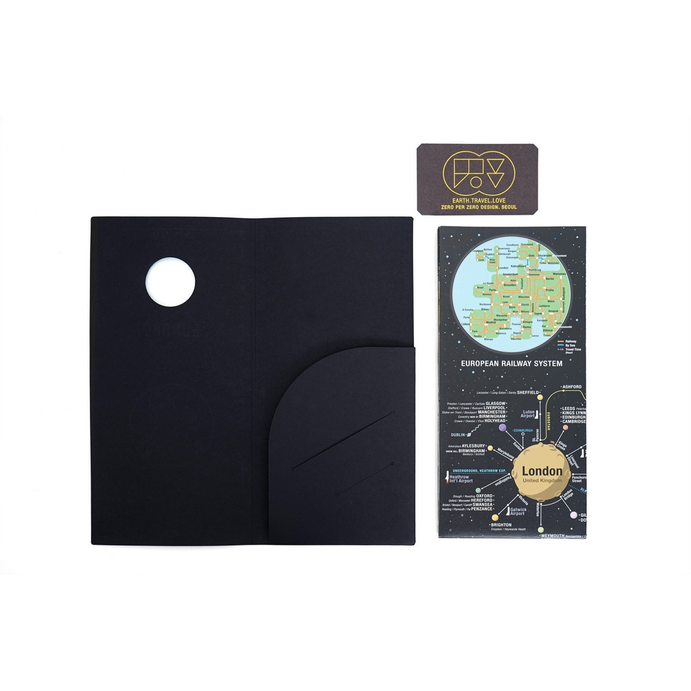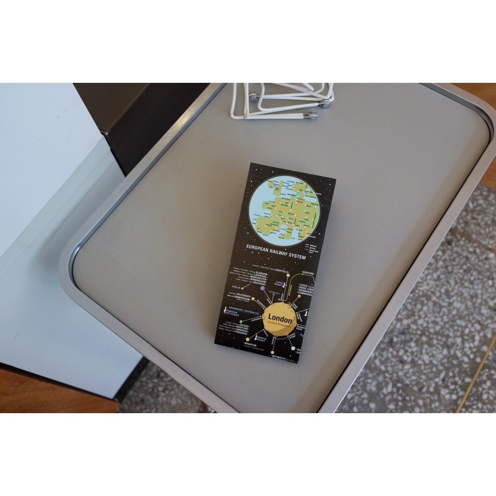 Die Vorderseite enthält das Railyway System, die Rückseite ein verspielte Darstellung von Verbindungen als Planetensystem.