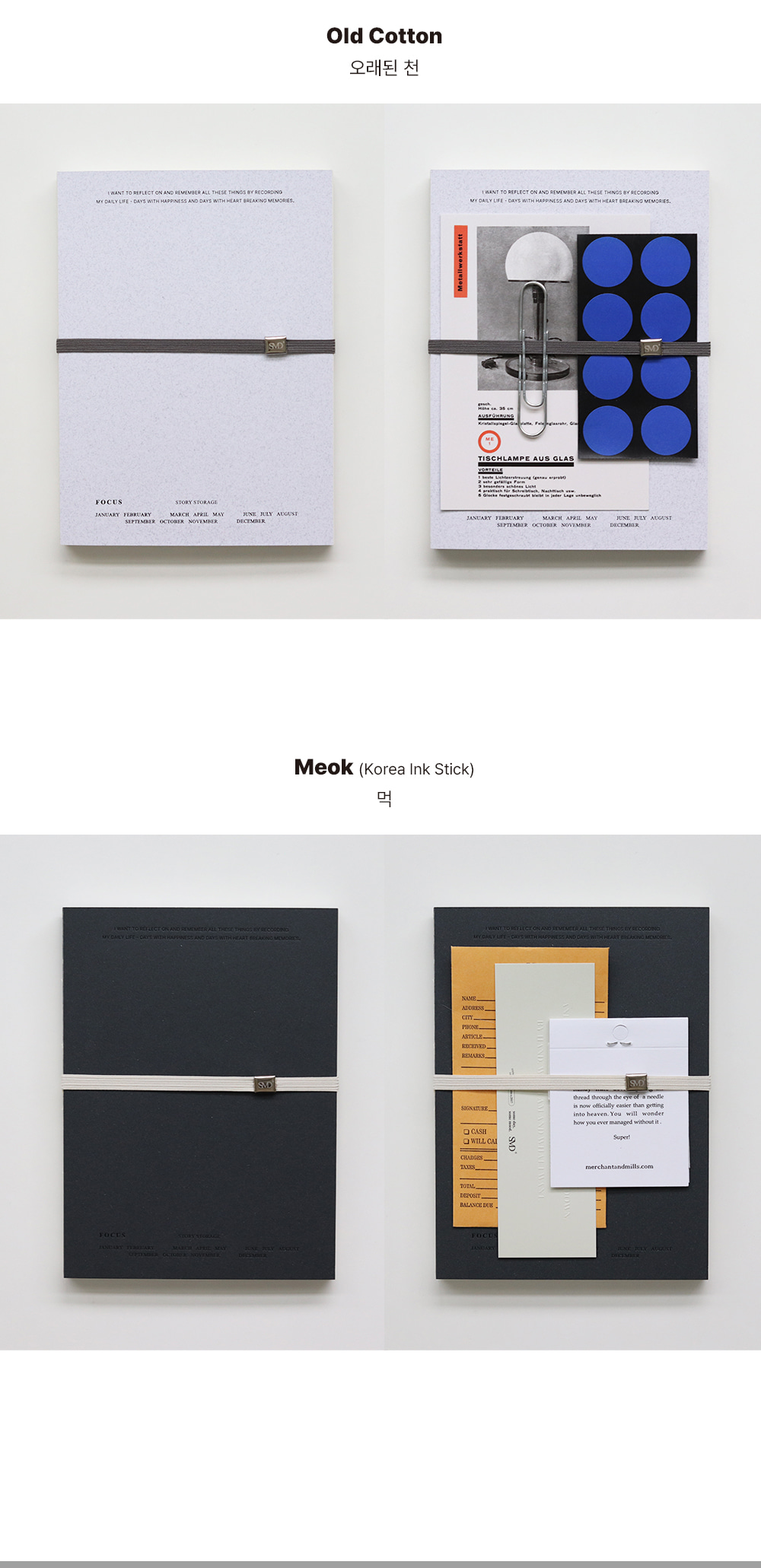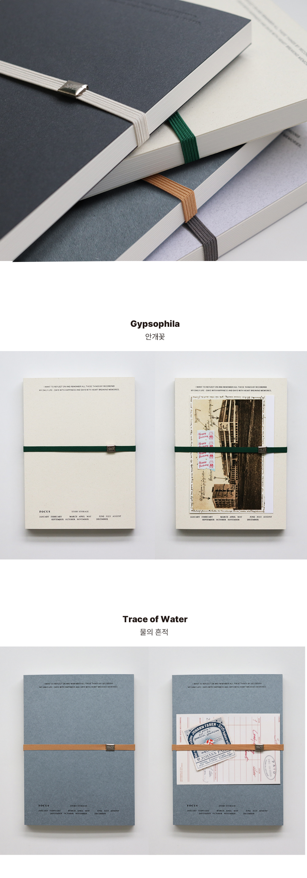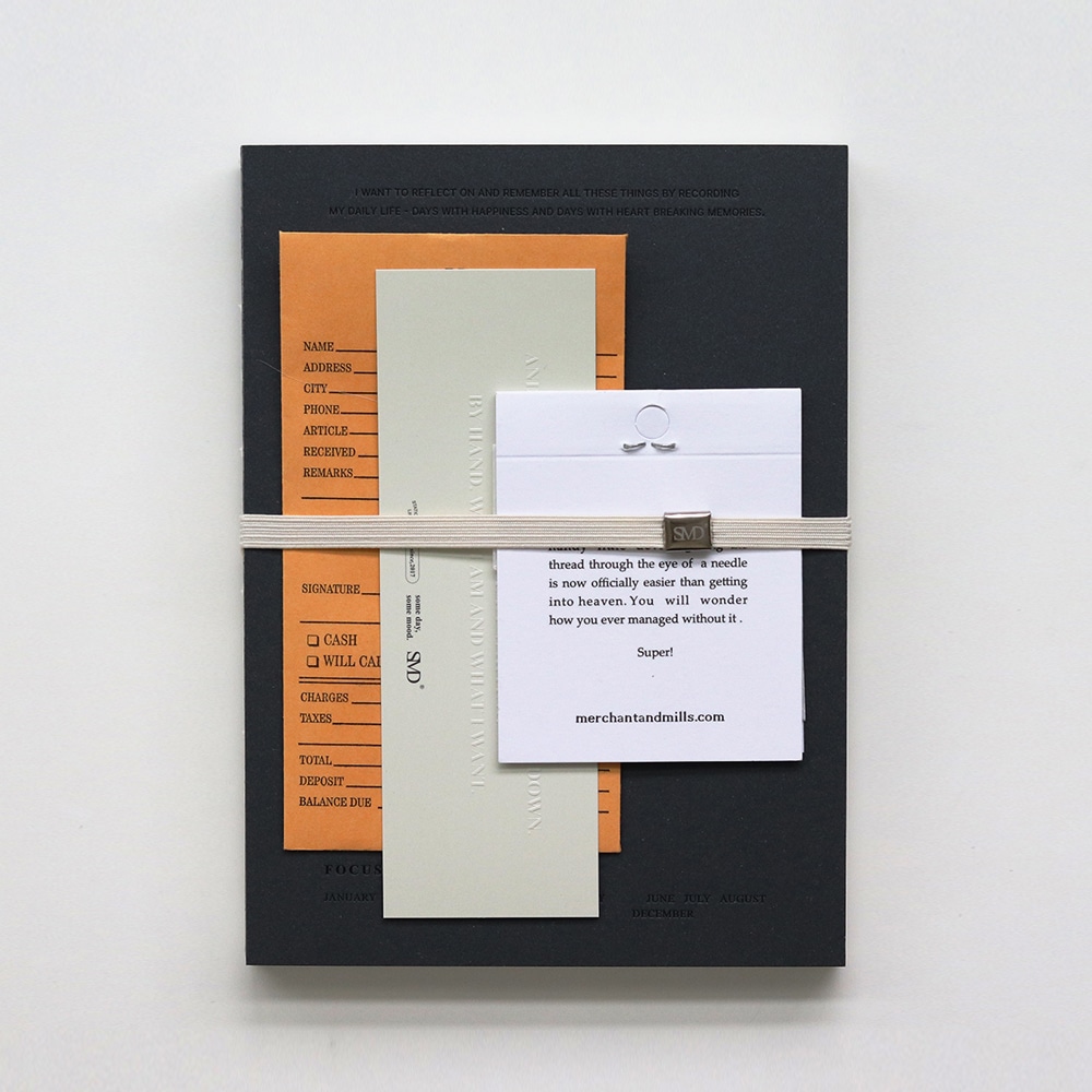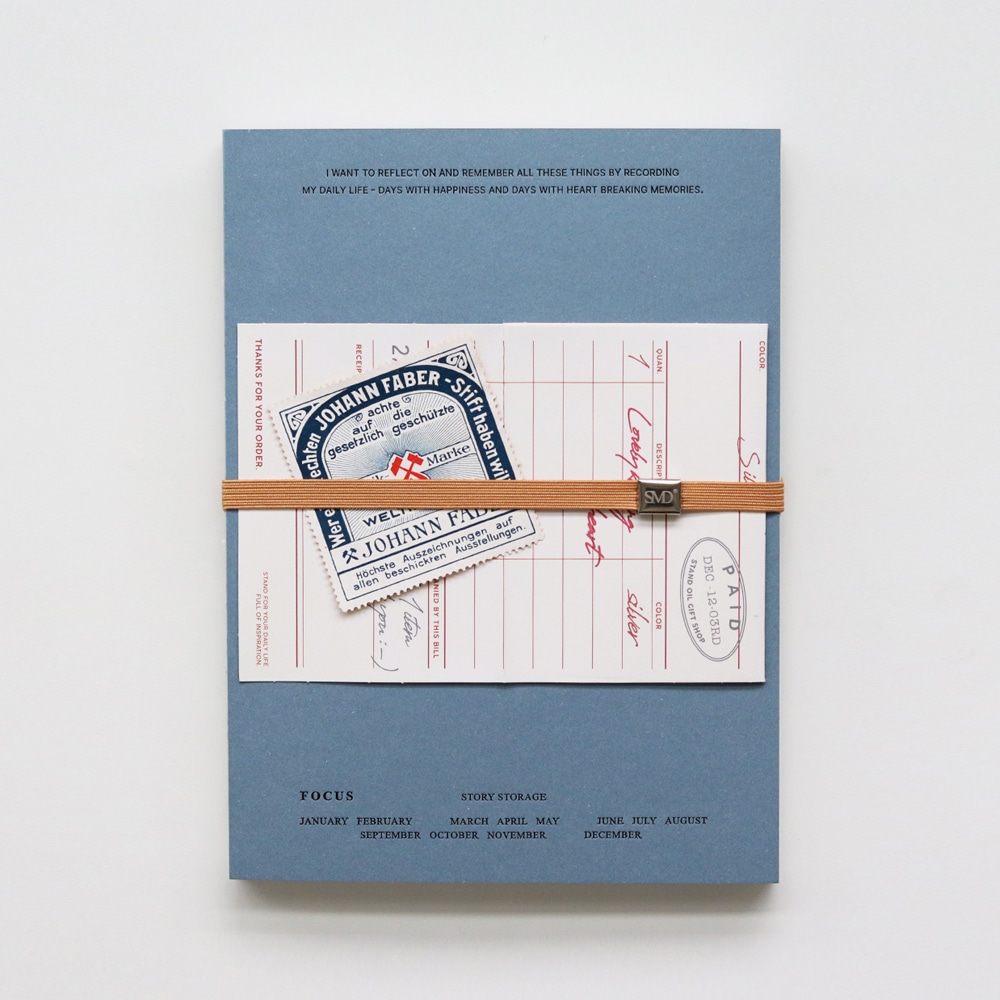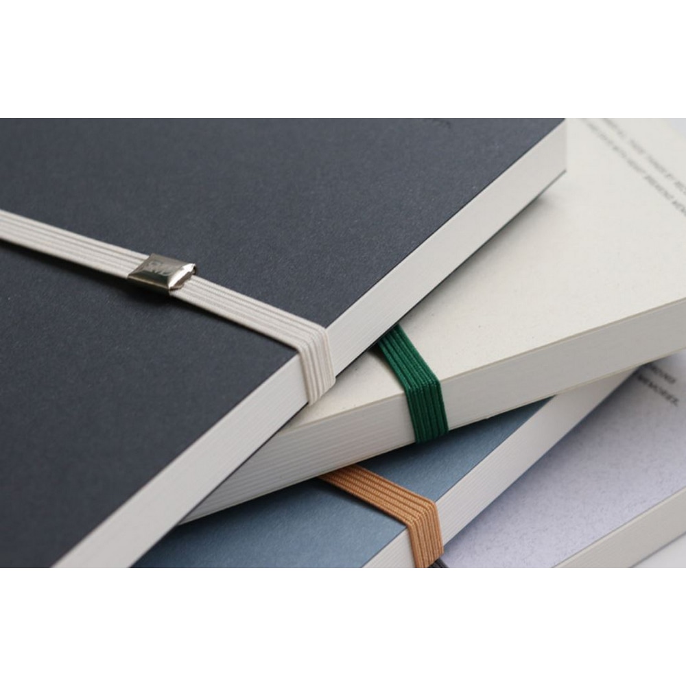 Ein loses Gummiband, ein Lesezeichen und Coversticker, zum Bezeichnen oder Datieren, machen das Set komplett.