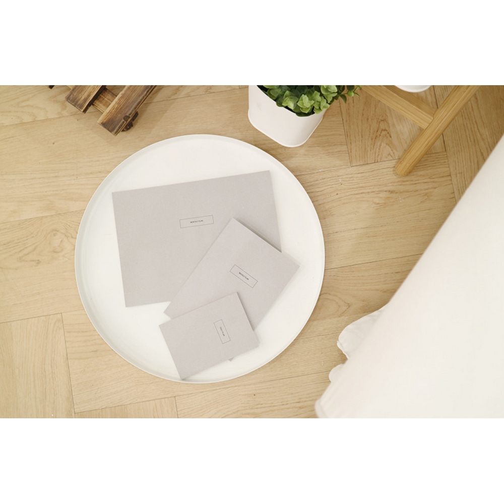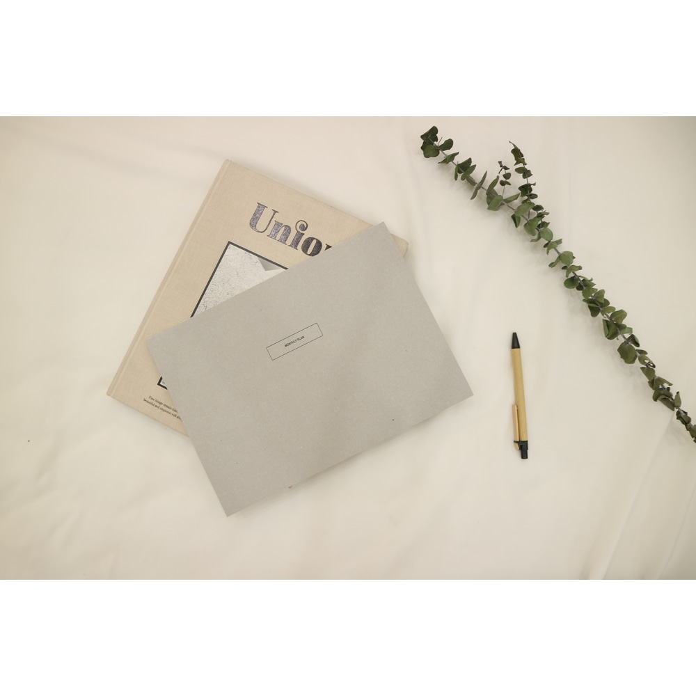 Der Umschlag ist aus Karton, die Bögen aus Recyclingpapier. Schlichtes übersichtliches Design im Format 297x210mm.
