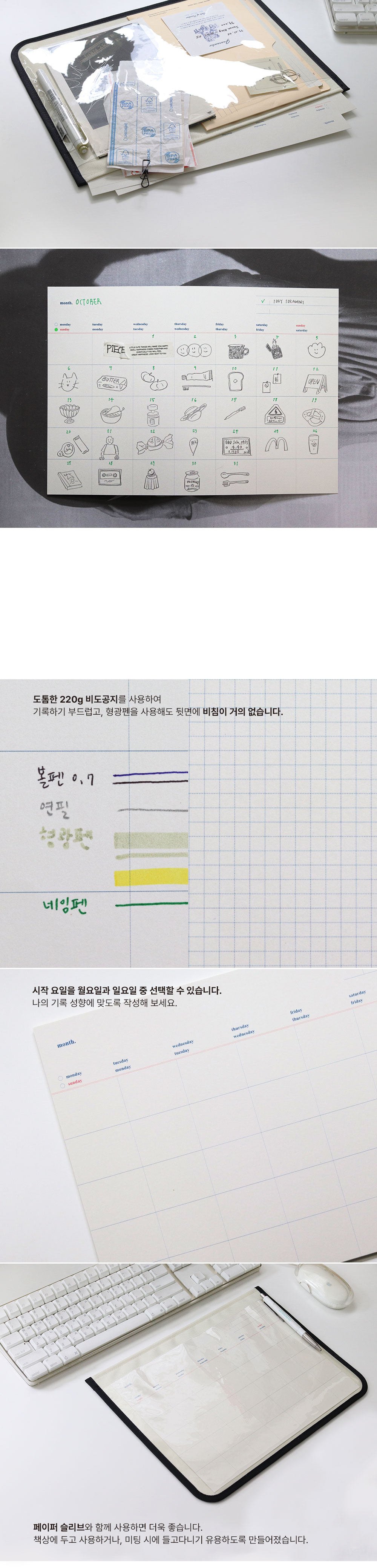 Das Monthly Sheet A5 besteht aus 15 ungebundenen, einzelnen Bögen mit undatierten Monatsplänen.