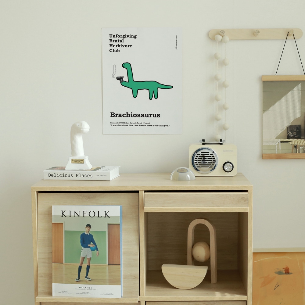Das Poster vom Brachiosaurus mit Pistole hat eine Größe von 30x40cm.