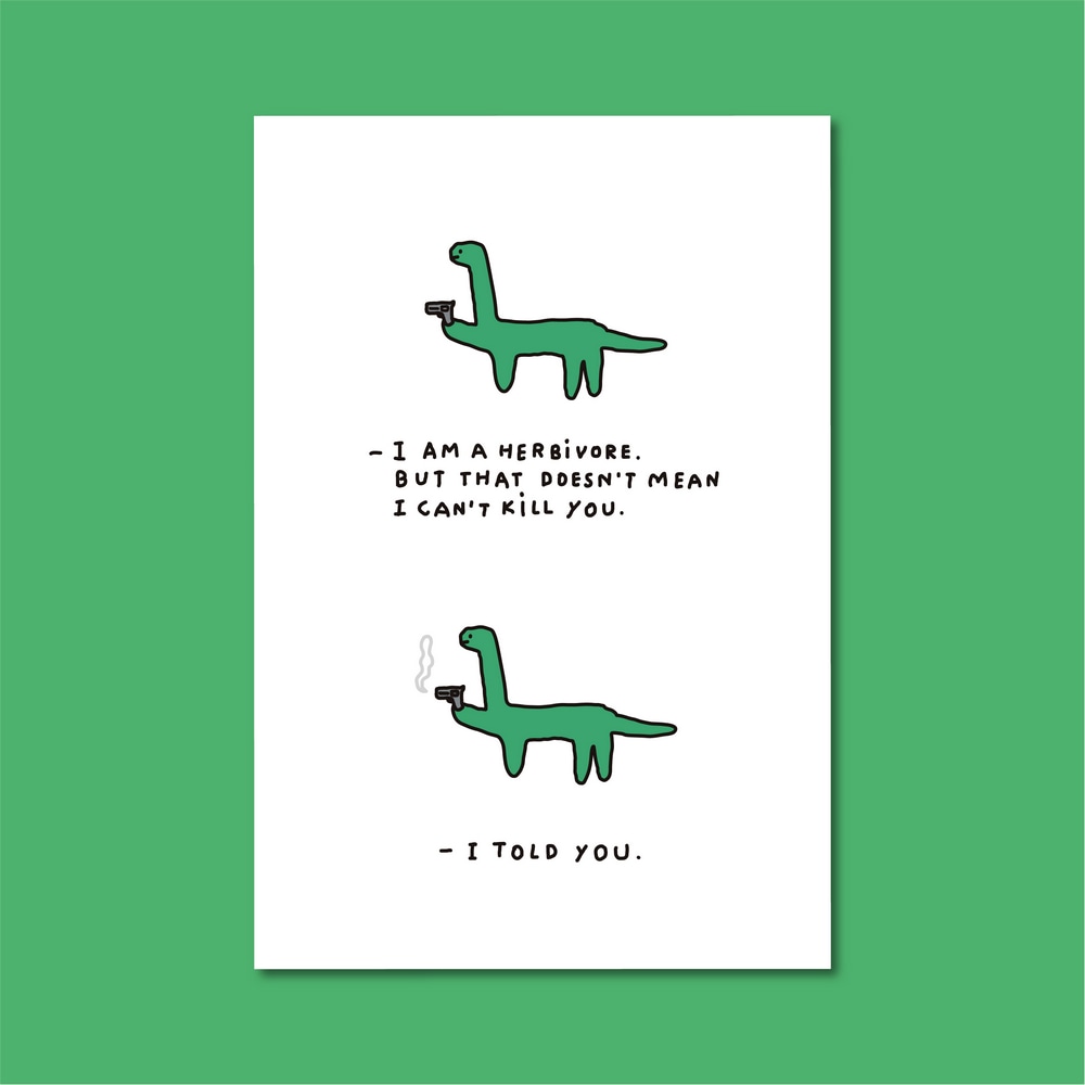 Einfache Postkarte von The Little Studio mit schönem Dino-Motiv.