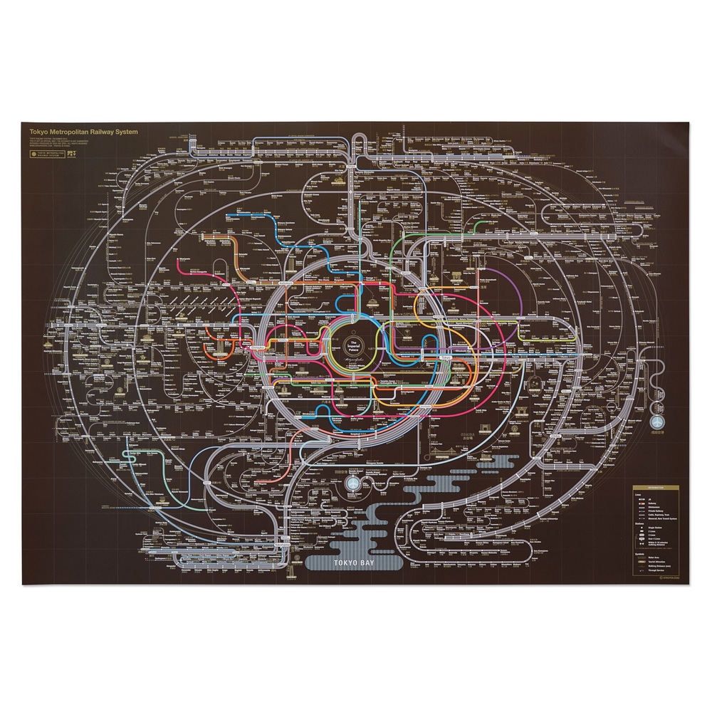 Das U-Bahn System von Tokyo als Poster mit Stadtplan auf der Rückseite.