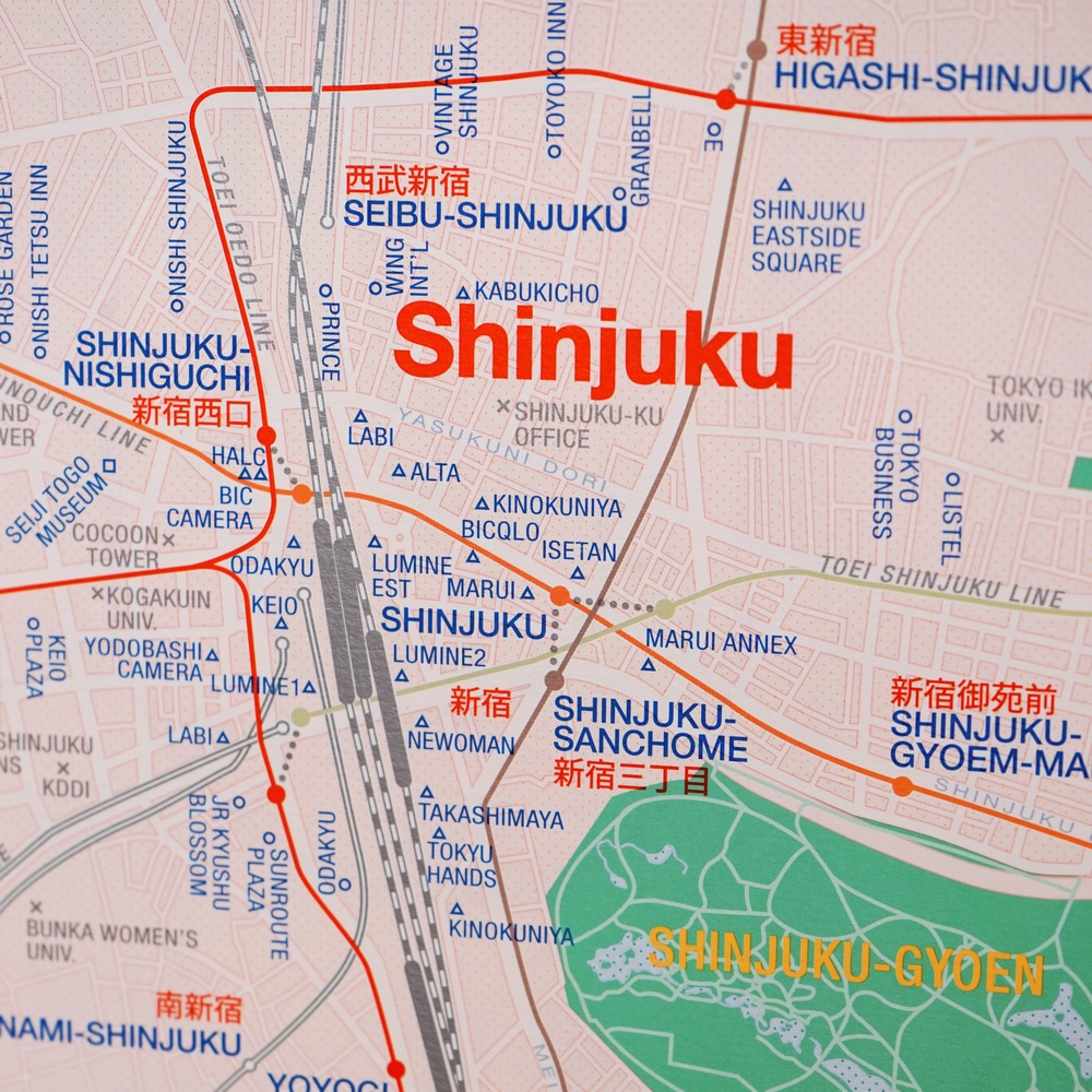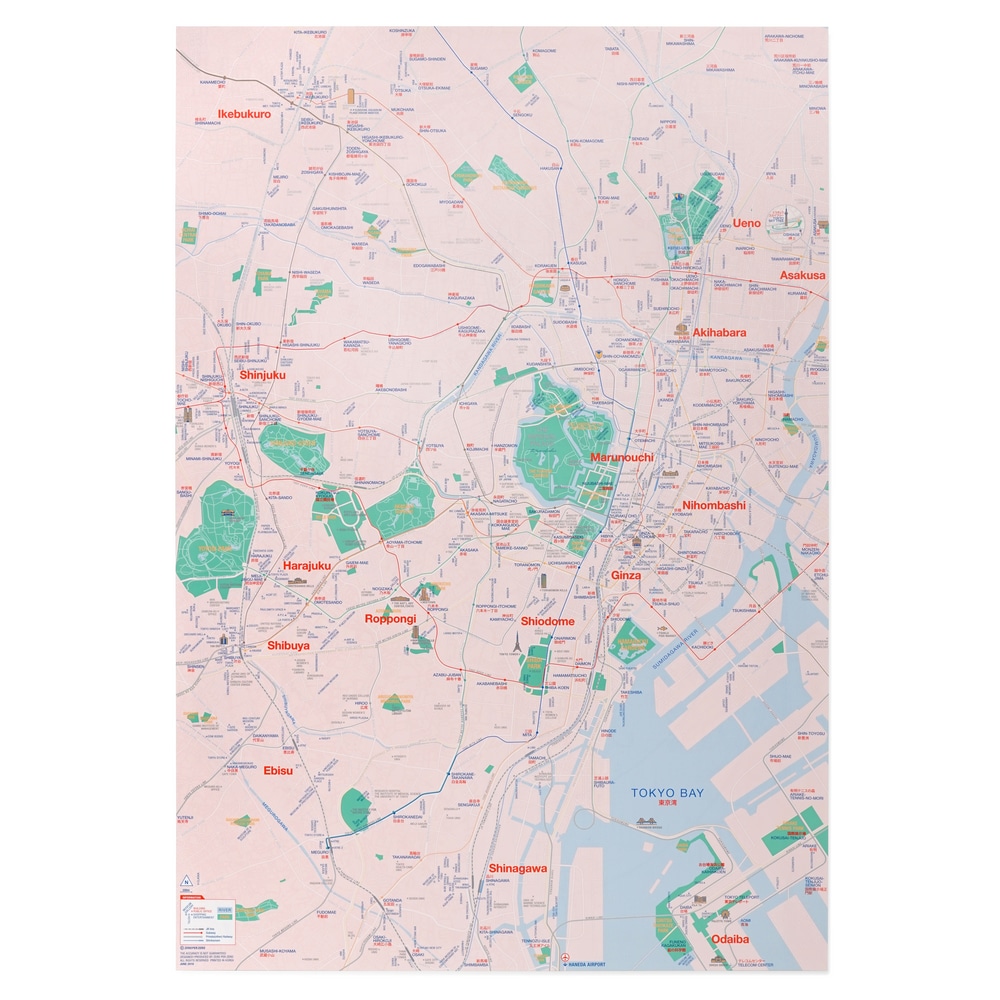 Das U-Bahn System von Tokyo als Poster mit Stadtplan auf der Rückseite.