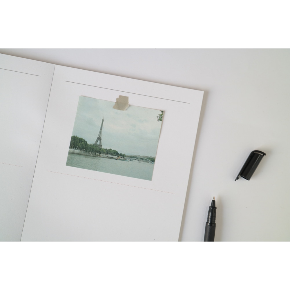 Der Umschlag ist aus Karton, die Bögen aus Recyclingpapier. Schlichtes übersichtliches Design im A5 Format.