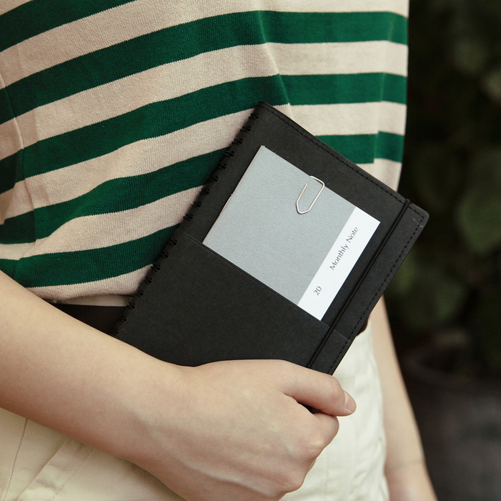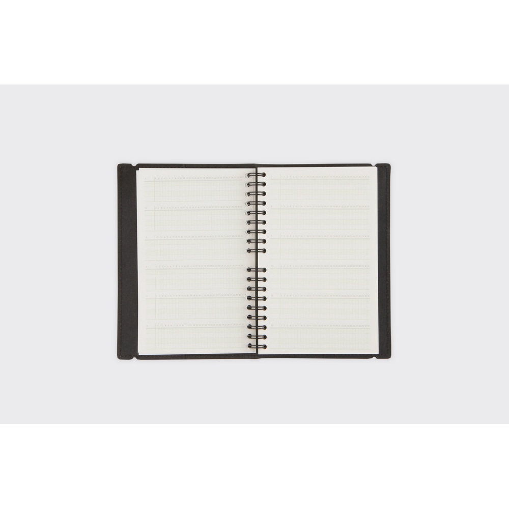 Das Half Diary ist ein undatierter Terminplaner und Notizbuch mit edlem Einband aus Denim Tag Paper und Spiralbindung.
