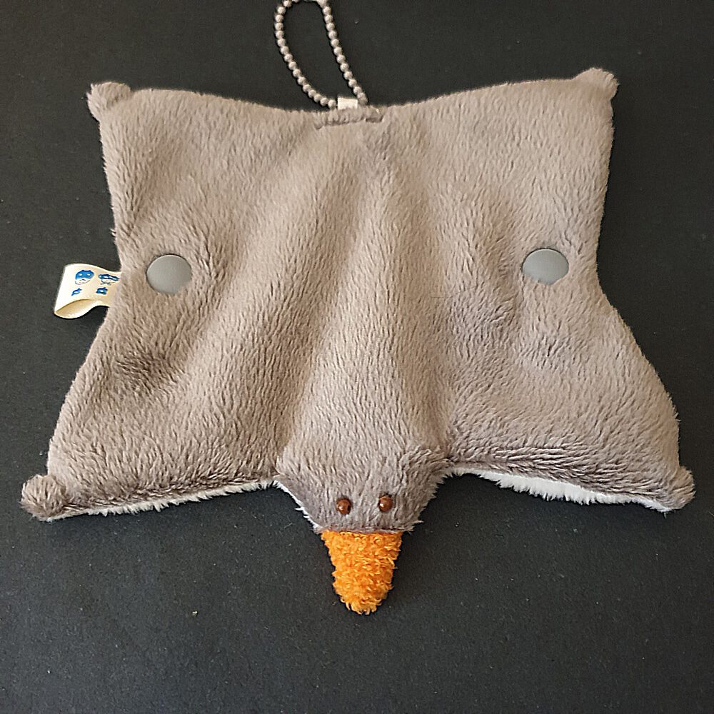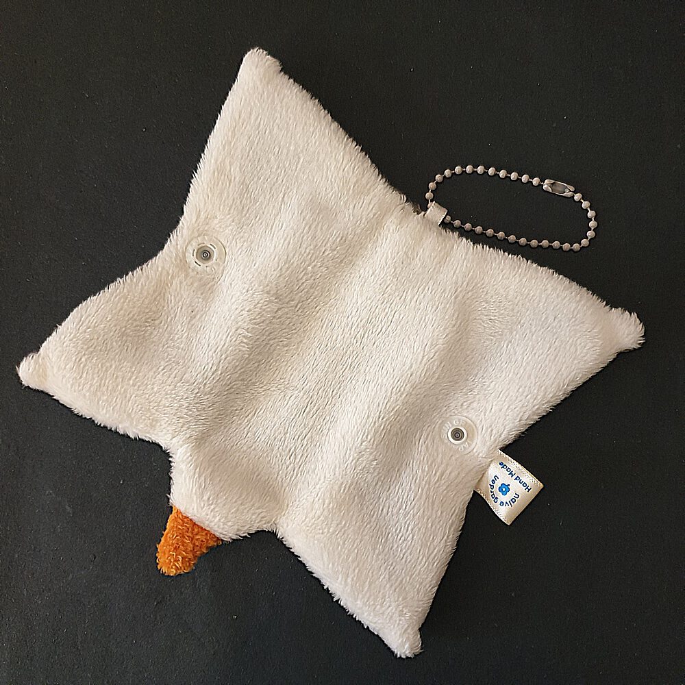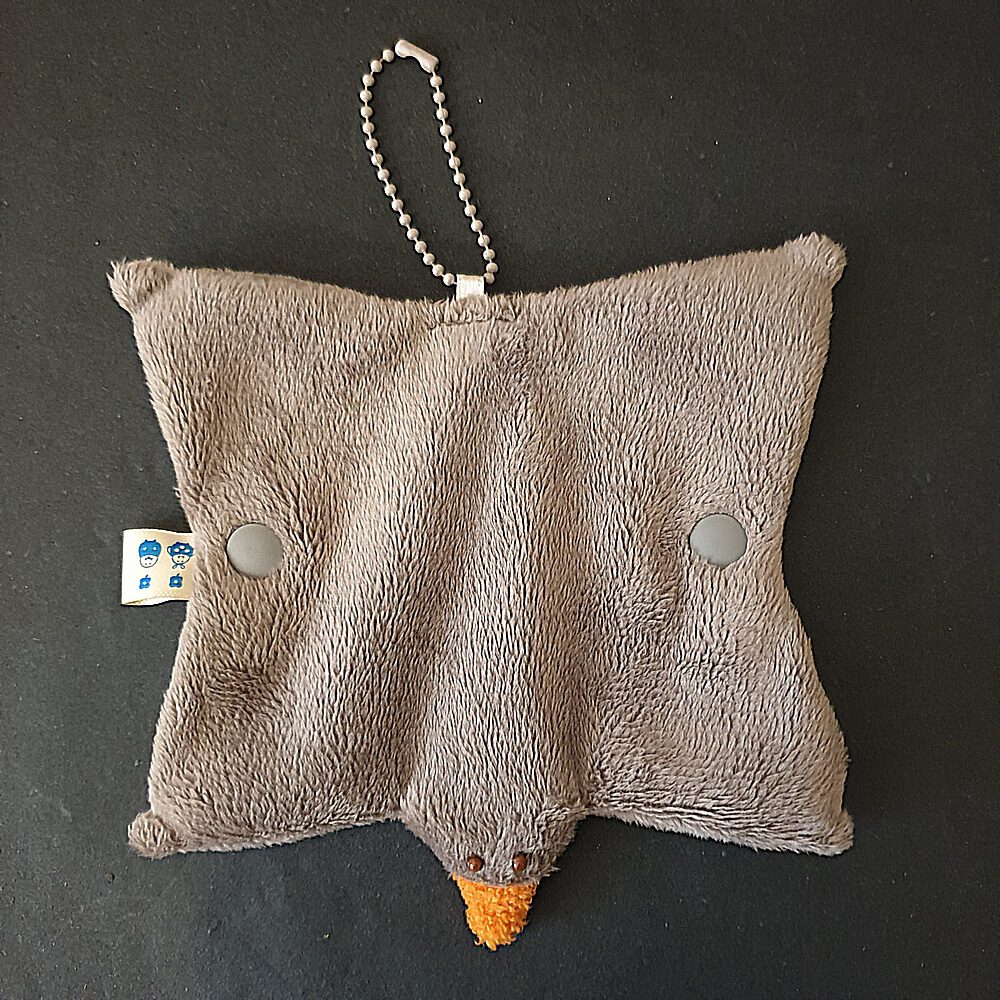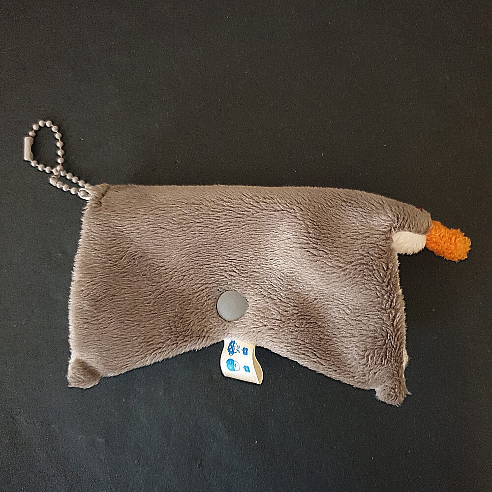 Der kuschelweiche Kiwi-Vogel hat einer Kugelkette zum Anhängen von Schlüsseln, und Druckknöpfe zum Schließen. Geöffnet liegt der Kiwibird flach und kann als Untersetzer benutzt werden.