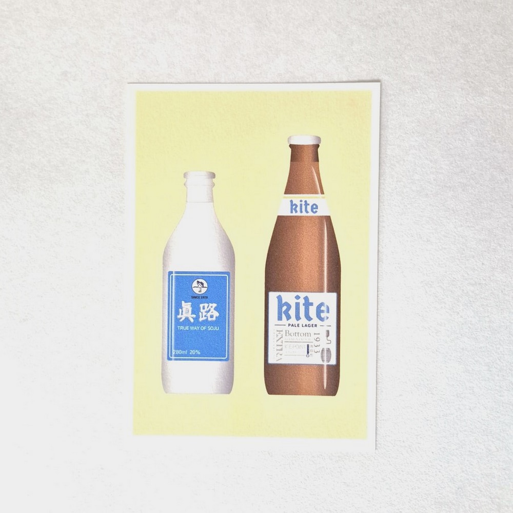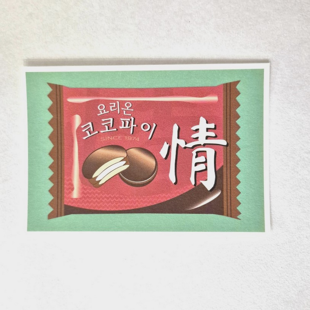 Postkarten mit ikonischen koreanischen Lebensmitteln.